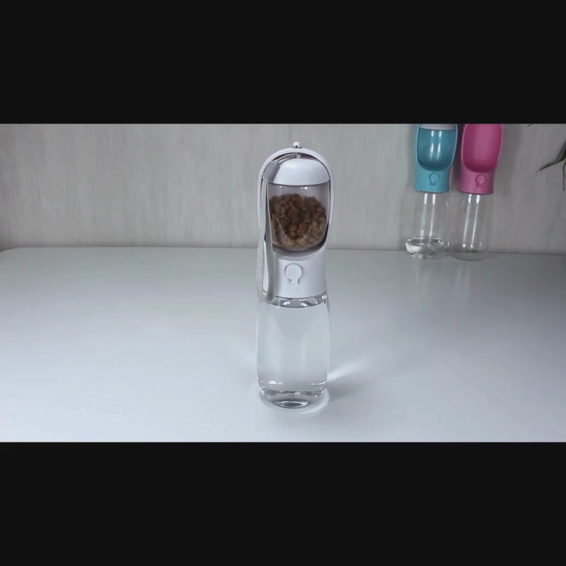 Cette gourde pour chien intègre deux compartiments : un pour l’eau avec bouton stop, et un pour la nourriture. Plus besoin d’emmener une gamelle chien encombrante : cette solution compacte remplace parfaitement une gamelle pliable chien.