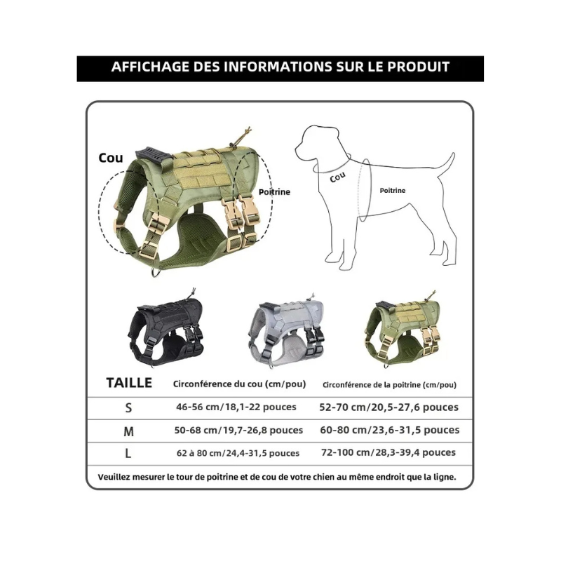 🛡️ Offrez performance et robustesse avec le Harnais chien militaire tactique – avec ou sans pochette