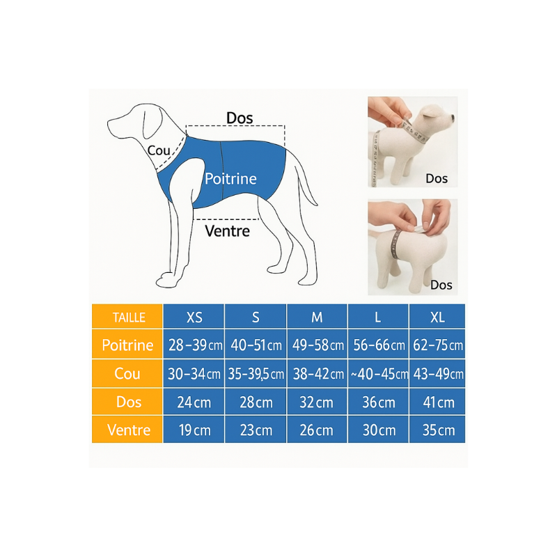 Si votre chien se situe entre deux tailles, nous vous recommandons de choisir la taille au-dessus pour plus de confort